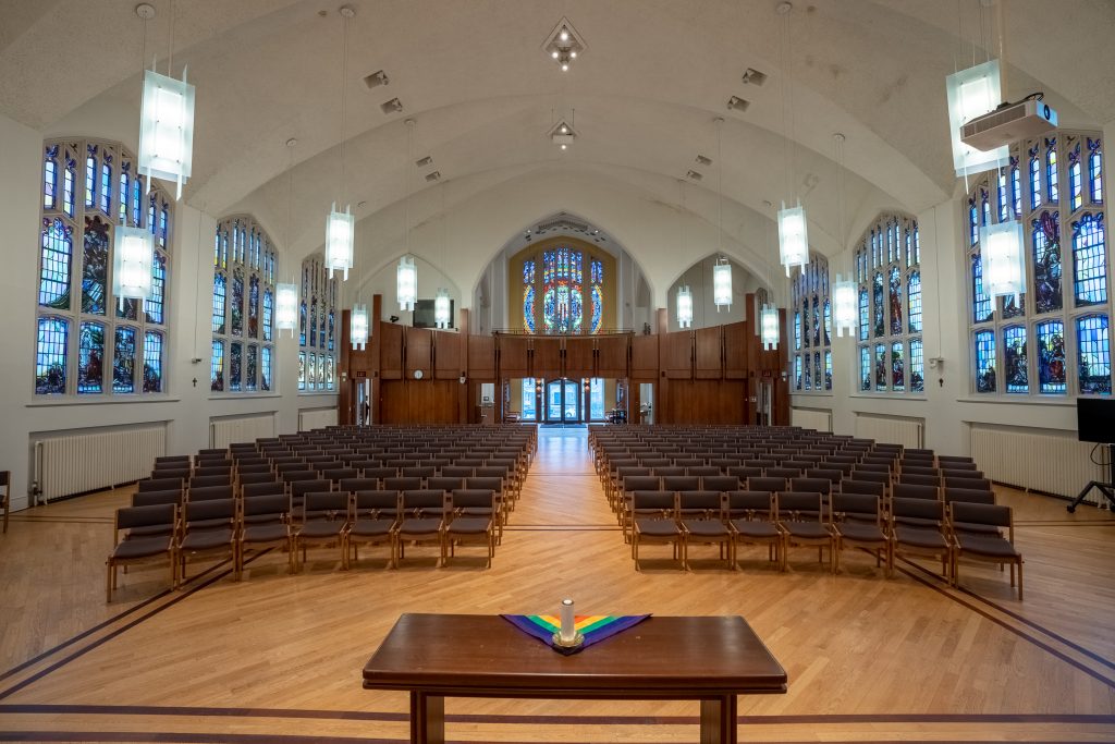 ESG United Church can accommodate weddings of up to 500 guests. Our sanctuary, bathed in natural light from stained-glass windows on all sides, and filled with joyous organ or piano music, provides an uplifting backdrop for your marriage service.