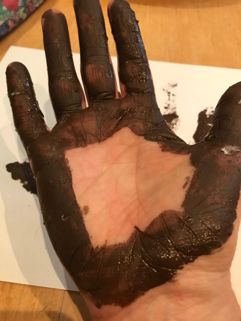 - Paint the palm side of your hand as shown in the photo.