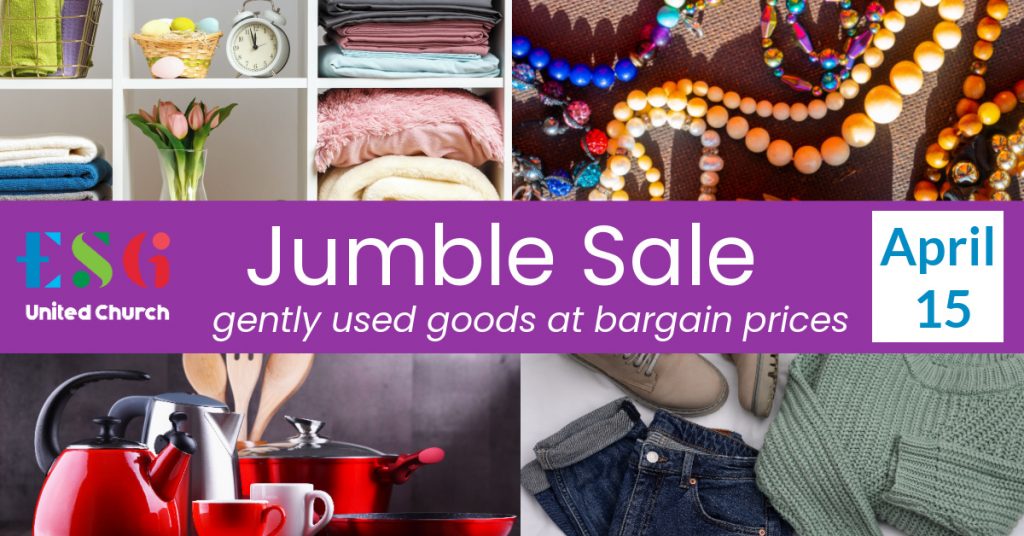 The Spring Jumble Sale is on Saturday, April 15th, 2023 from 10 am – 1 pm.