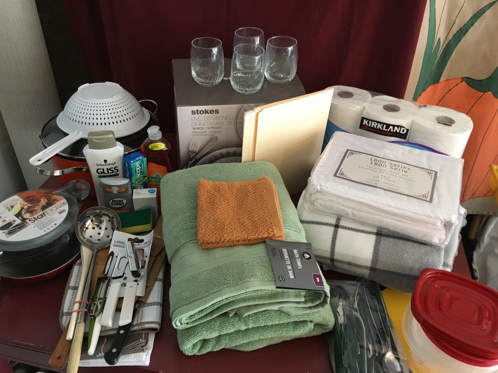 What is the Welcome Basket Project? This is an effort to help people currently living in our homeless shelters transition to their own independent housing. Remember when you moved into your first apartment on your own and you needed a pot to boil water, a plate to put your dinner on, a wooden spoon, some cutlery, a glass for water, sheets and a towel? That’s what’s in a starter kit.