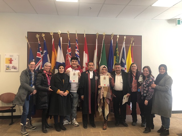 Right before the Covid-19 shutdown in February 2020, several of us joined and witnessed the Canadian Citizenship ceremony for Hala and Yahya and joined their family for a celebration afterwards. Mohammed and Abdul-Hamid are also in various stages of applying for their Canadian Citizenship. The Citizenship requirements include a certain level of English or French proficiency. Mohammed in particular is very eager to get his Citizenship so he can go out and vote!